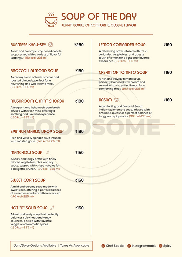 Buy Any 1 Soup (Rs. 160-180) & Get Any 1 Soup (Same OR Lesser Value) Free